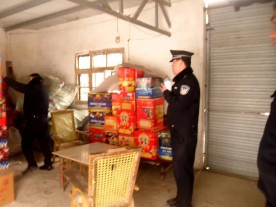 2018年1月24日,邓州裴营派出所针对春节期间烟花爆竹销售量增大的实际情况,为了消除因运输、存储烟花爆竹而带来的安全隐患,保障人民群众平安过年,该所组织警力对本辖区内烟花爆竹销售点进行全面检查。检查中,民警重点查看了烟花爆竹销售点有没有安监部门发放的烟花爆竹销售许可证,店内是否有消防安全设施,烟花爆竹储存量是否超量以及是否符合一证一点等情况。