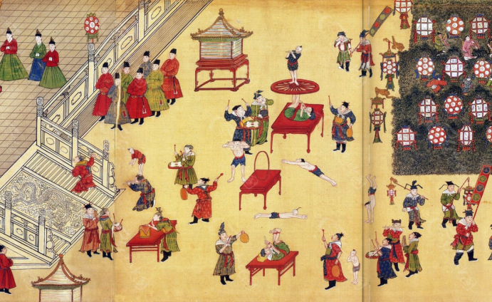 明 佚名《明宪宗元宵行乐图》局部,中国国家博物馆藏,图中所绘乃是明宪宗观看百戏