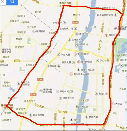 一、德阳市区成绵高速公路以西、嘉陵江路以北、宝成铁路以东、青衣江路以南区域为全面禁止燃放烟花爆竹的区域。